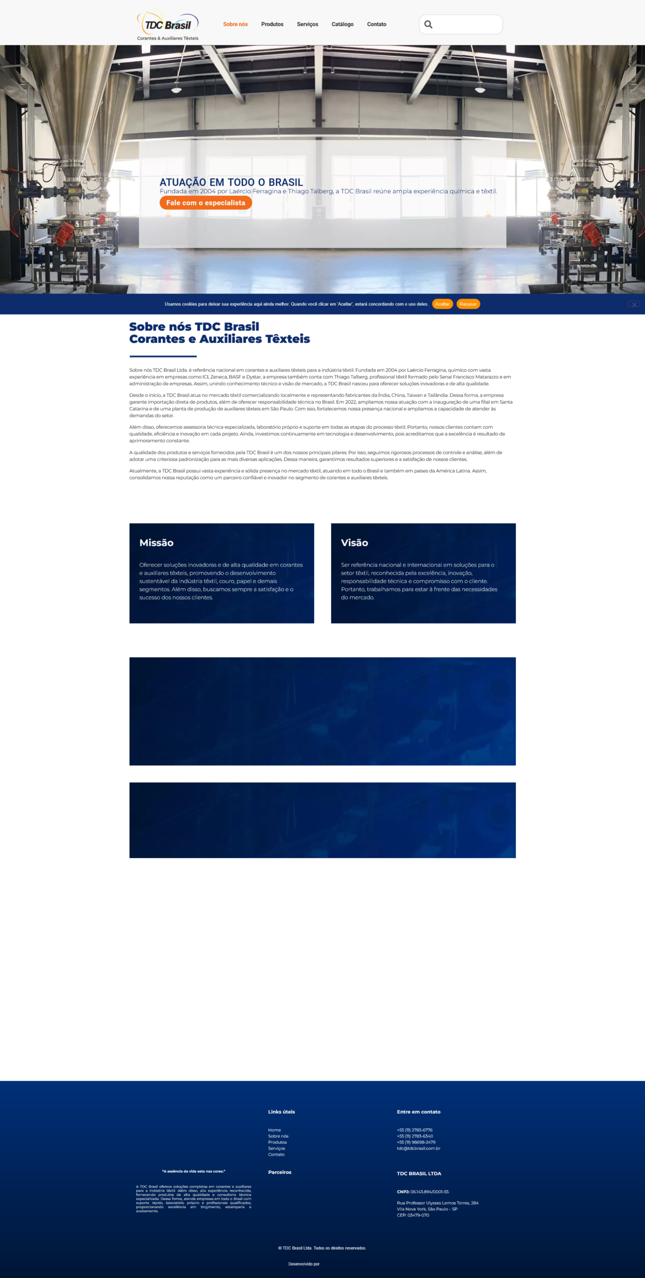 A Studio Bolt desenvolveu um projeto completo de presença digital para a TDC Brasil Ltda., empresa referência nacional no fornecimento de corantes e auxiliares têxteis para a indústria têxtil. O trabalho foi estruturado para fortalecer a autoridade da marca no ambiente online e otimizar a comunicação com o público B2B.